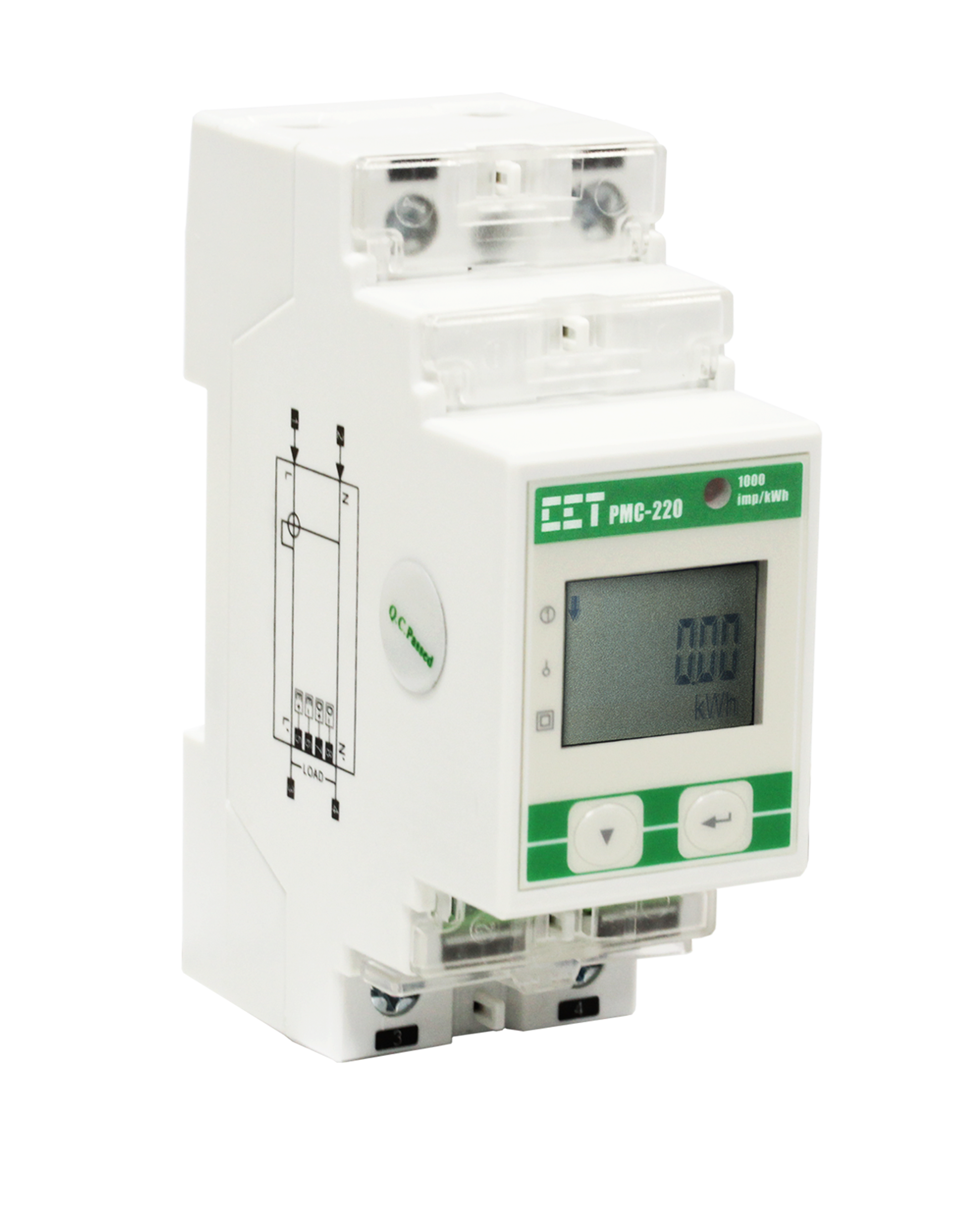 The CET PMC-220 Single-Phase Multifunction Energy Meter is designed for the low-voltage energy metering market. It features a DIN-rail mount design, compact construction, 63A direct-connect input, and high-accuracy energy measurement.
